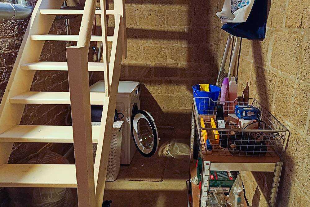 Это подвал. Тут мы стираем и храним всякие хозяйственные мелочи. Для крупных вещей есть сарай