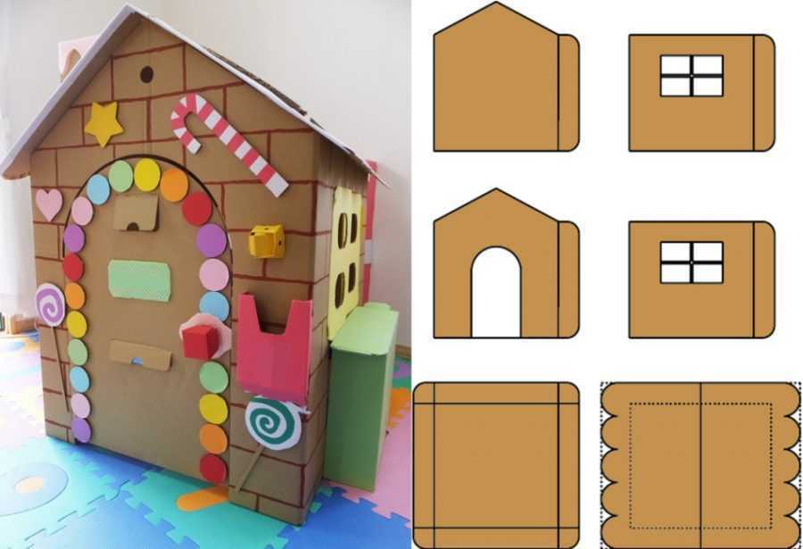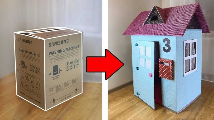Шаг 1. Возьмите подготовленную картонную коробку, изготовьте из нее домик. Для этого нарежьте коробку на детали, после чего склейте их друг с другом.