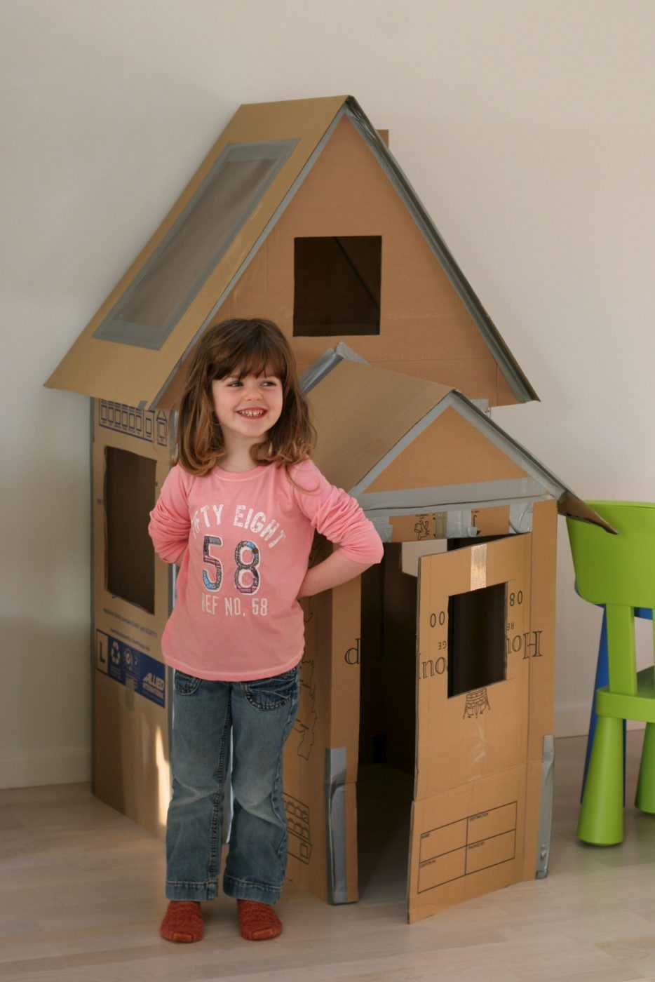 После того, как конструкция дома готова, можно приступать к декору. Здесь от вас потребуется только техническая помощь, ведь в каждом ребенке живет творец. Используйте остатки обоев, вырезки из журналов, цветную бумагу для оклеивания стен.