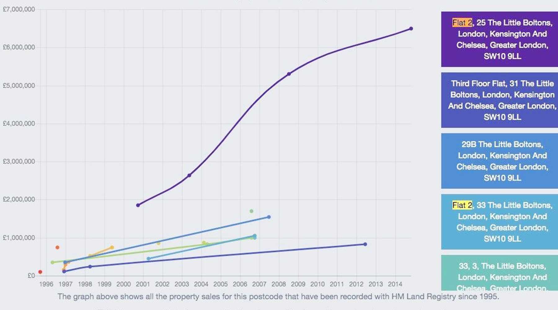 Именно этим годом, по данным ресурса Zoopla.co.uk, отслеживающего цены на недвижимость, датируется последняя запись о возможности купить в престижном округе Кенсингтон и Челси люксовые апартаменты на улице The Little Boltons, 25 за £6,75 млн.