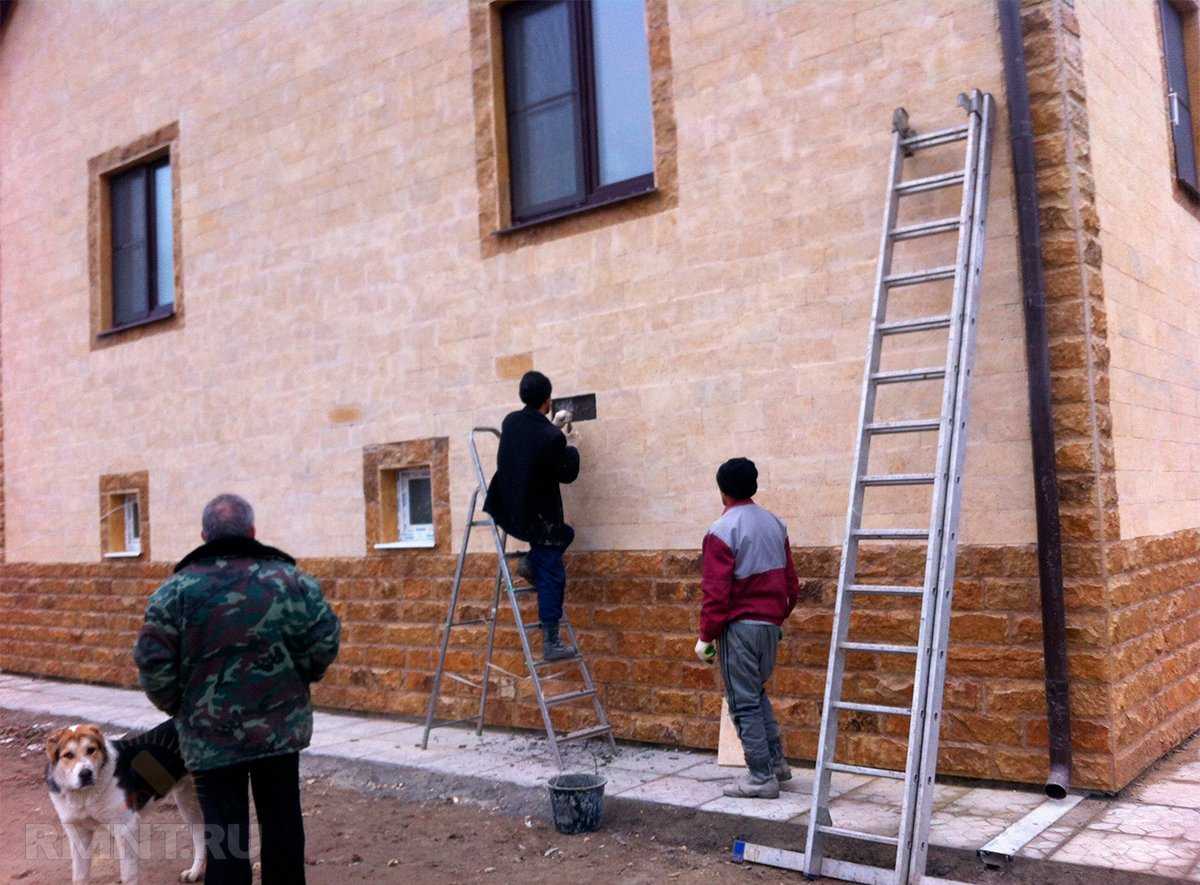 Следующий важный момент – подготовка несущей поверхности. Стены дома должны представлять собой надежную опору, способную выдержать немалый вес отделочного слоя. Допустимая нагрузка при облицовке любым натуральным камнем 22-24 кг/м2. Следовательно, перед началом отделочных работ подготавливают стены и цоколь.