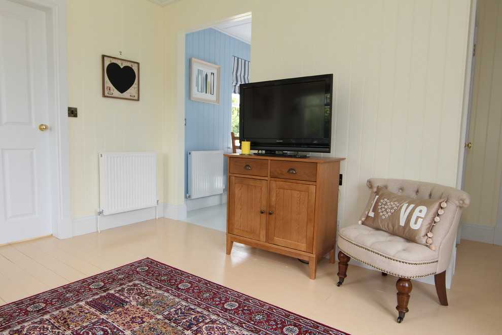 Чтобы интерьер выглядел более традиционно, он должен был перекликаться с окружающим пейзажем. Светлое воздушное пространство гостиной с кремовыми стенами украшает диван едва ощутимого серого оттенка. В момент создания проекта дизайна стоящая за окном июльская погода стала основным источником вдохновения для Дженнифер.