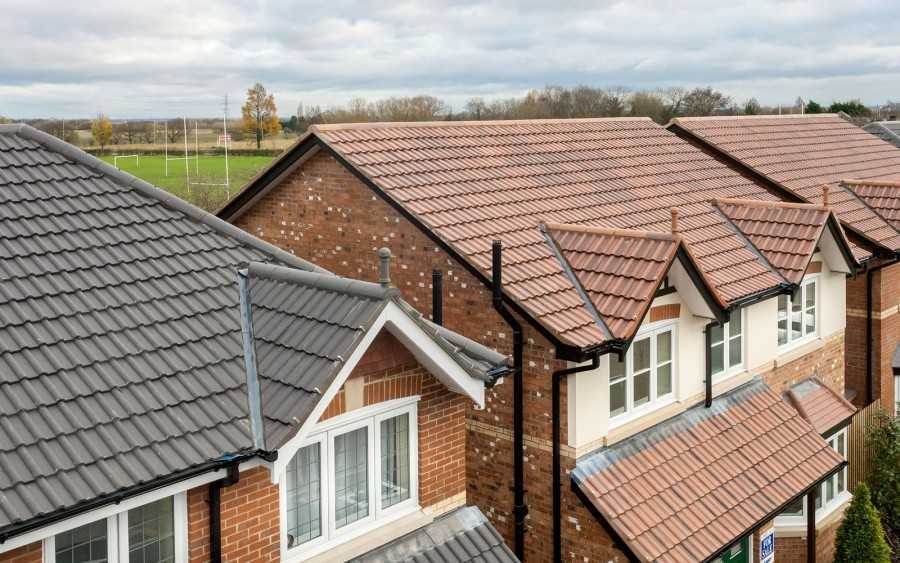 Черепица обладает высокими декоративными качествами, надежная и легкая. Производится самых разных цветов. Оттолкнуть от выбора в ее пользу может высокая стоимость крыши. Подходящий уклон для керамической черепицы – 30-60º. Если он будет меньше 25º, необходимо позаботиться об усилении вентиляции и гидроизоляции.
