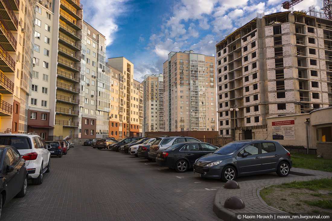 04. Дворик. Сейчас этот район активно застраивается, скоро здесь будет новое высотное здание, построенное из газосиликатных блоков на монолитном каркасе. Много здесь и кирипичных домов, а вот панелек нету — Мингорисполком запретил их строить в районах, прилегающих к центру города.