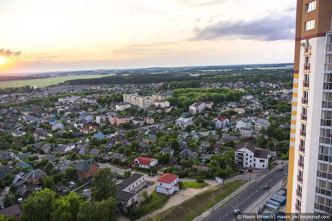 08. Солнце садится. С балкона на самом верхнем этаже открывается хороший вид на коттеджную застройку северо-восточной части Минска.