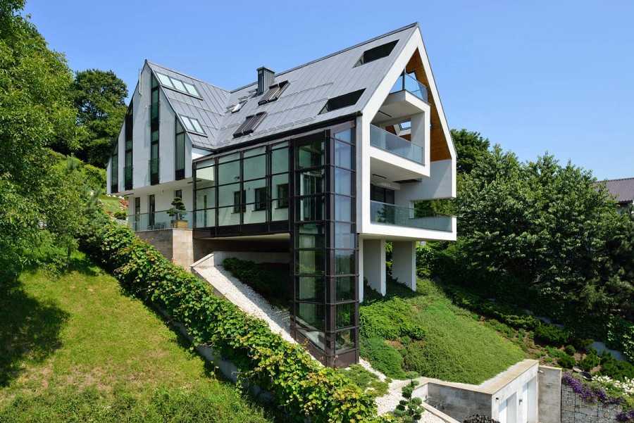 Это, во-первых, вкусовщина. Во-вторых, есть фишки и хитрости: односкатная крыша резко прибавляет в стиле, если добавить панорамные окна . Либо можно скомбинировать несколько скатов, но на разных уровнях.