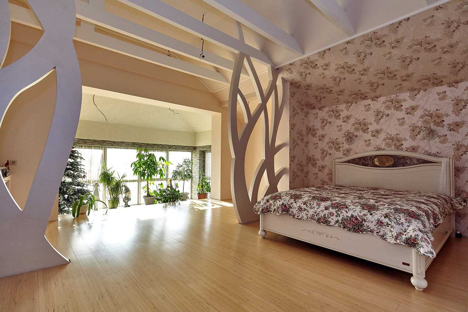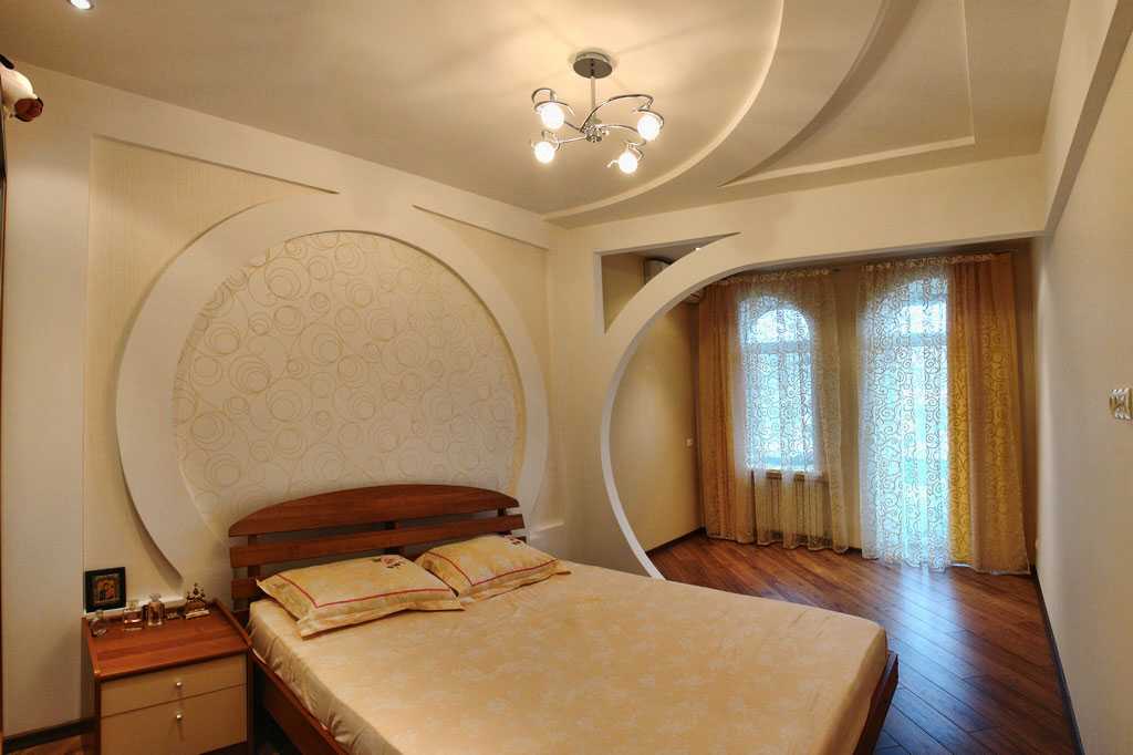 Если использовать в интерьере элемент, повторяющийся в разных его вариантах, то успех и гарантия того, что это понравится заказчику, будет 100%. К примеру, на фото выше видно, что овал, расположенный на потолке, в дизайне интерьера плавно перетекает на дверные арки из гипсокартона. Необычное решение, не правда ли?