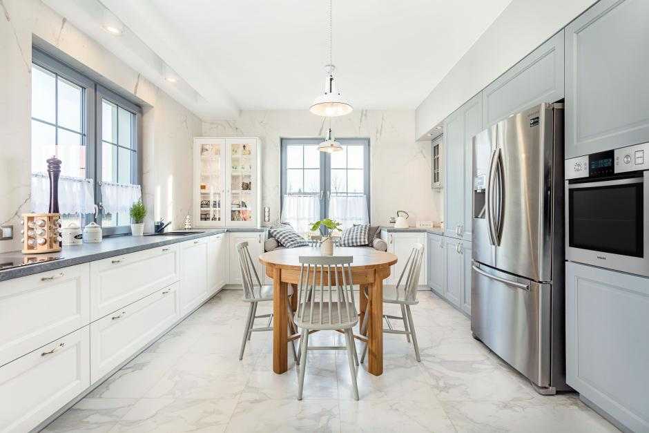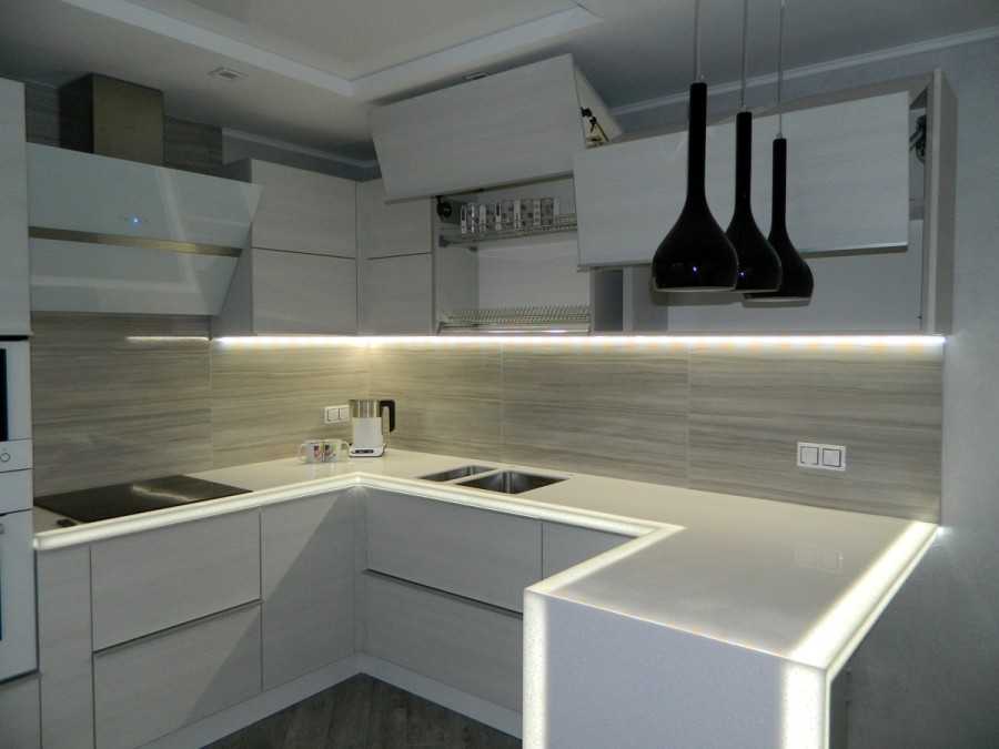 Как выбрать столешницу и фартук для интерьера серо-белой кухни