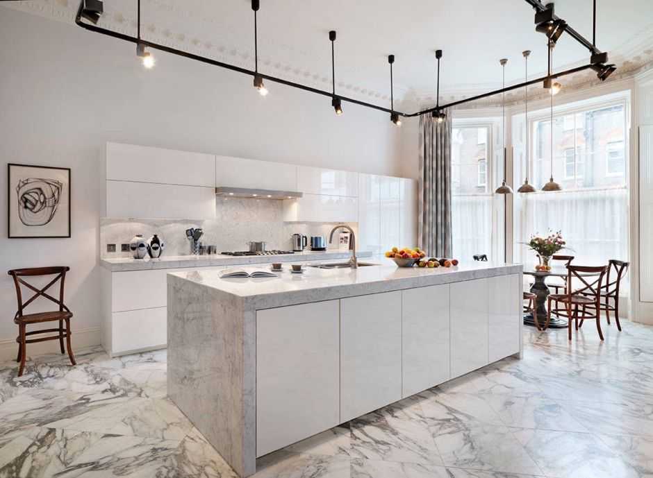 Мрамор – довольно универсальный материал, который можно часто встретить в кухонных помещениях. Прежде чем оформлять интерьер, надо посмотреть фото мраморной столешницы или пола на кухне, а также ознакомиться с основными особенностями натурального камня.