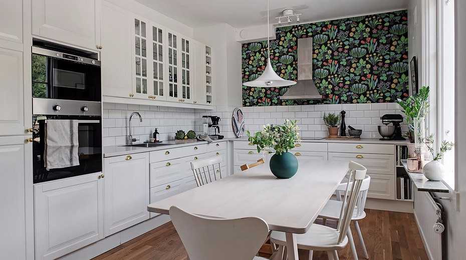 В скандинавских интерьерах белый цвет – безоговорочно главный, и на то есть две причины. Во-первых, такие интерьеры требуют максимального количества света и ощущения пространства – как раз, чтобы уместить все необходимое в маленькой кухне. Во-вторых, все яркие и необычные красочные аксессуары, фотографии, лоскутные подушки и украшения ручной работы лучше всего смотрятся именно на белом фоне.