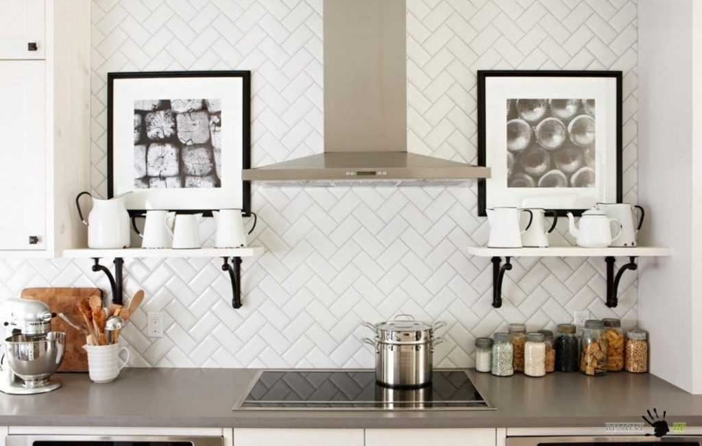 Традиционной кладкой считается кирпичная укладка глянцевой фактурой. Выложенная белая плитка на кухне не крупного размера прямоугольной формы подражает кирпич. Возникает чувство очень крепкой стены с недавней покраской. Традиционная укладка подходит для классики, кантри, скандинавского, прованса, лофта, арт-деко. При добавлении тематических рисунков можно использовать в модерне, ретро, экостиле, винтажном и т.п.