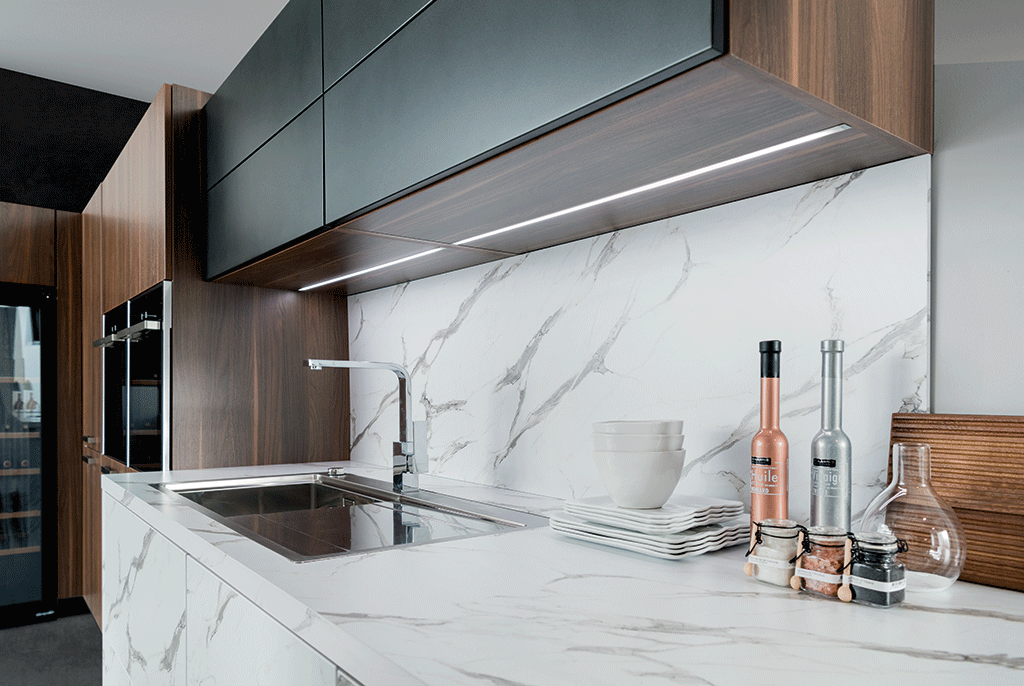 Это правда, что мрамор требует особого ухода и внимания, но это ценный и распространенный материал, используемый на кухне во всем мире. Если подойти к выбору только с практической точки зрения – не тянитесь к натуральному мрамору. Для тех, кто считает красоту, класс и уникальный внешний вид одинаково важными, мрамор имеет лучшие рекомендации. Тем не менее, также возможно объединить оба варианта- как всегда с помощью новейших технологий.