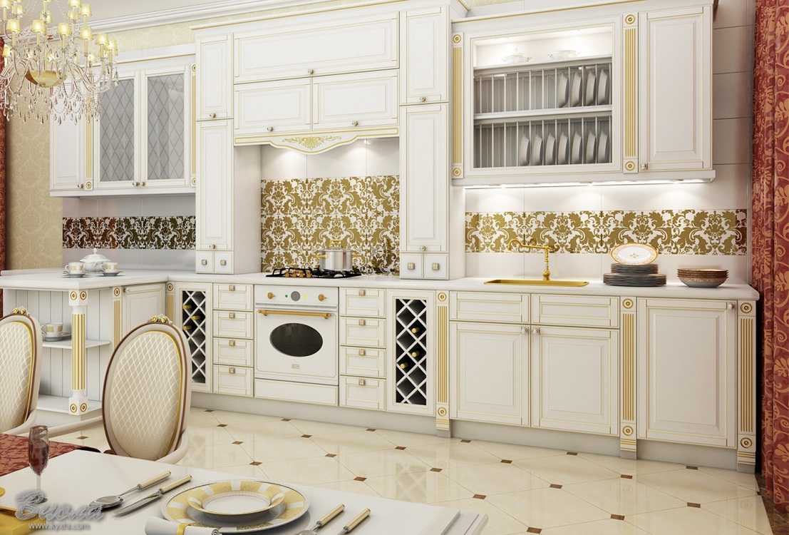 Допустимо ли использовать белый в дизайне кухни в классическом стиле? В ряде случаев не только допустимо, но и необходимо. Например, когда нужно облегчить нарядность и вычурность традиционного интерьера в маленькой кухне.