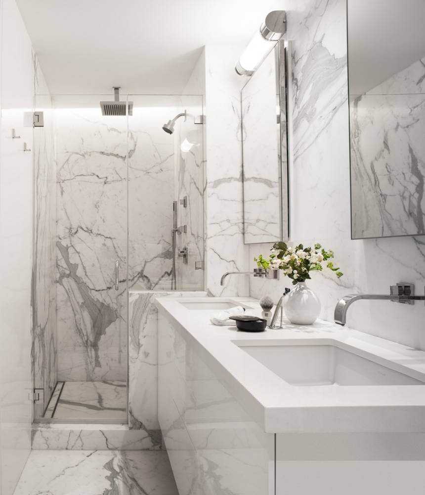 Белый мрамор в разных помещениях: фото идеи оформления дизайна квартиры