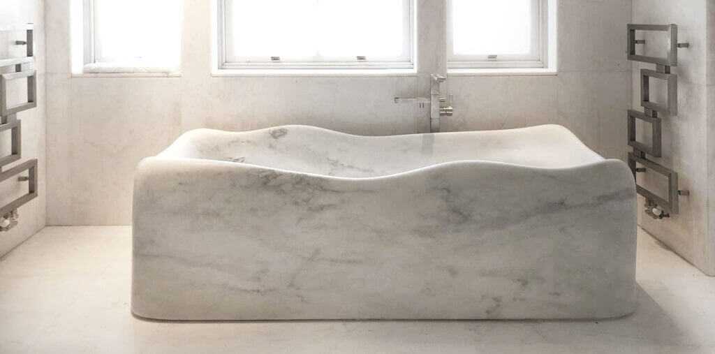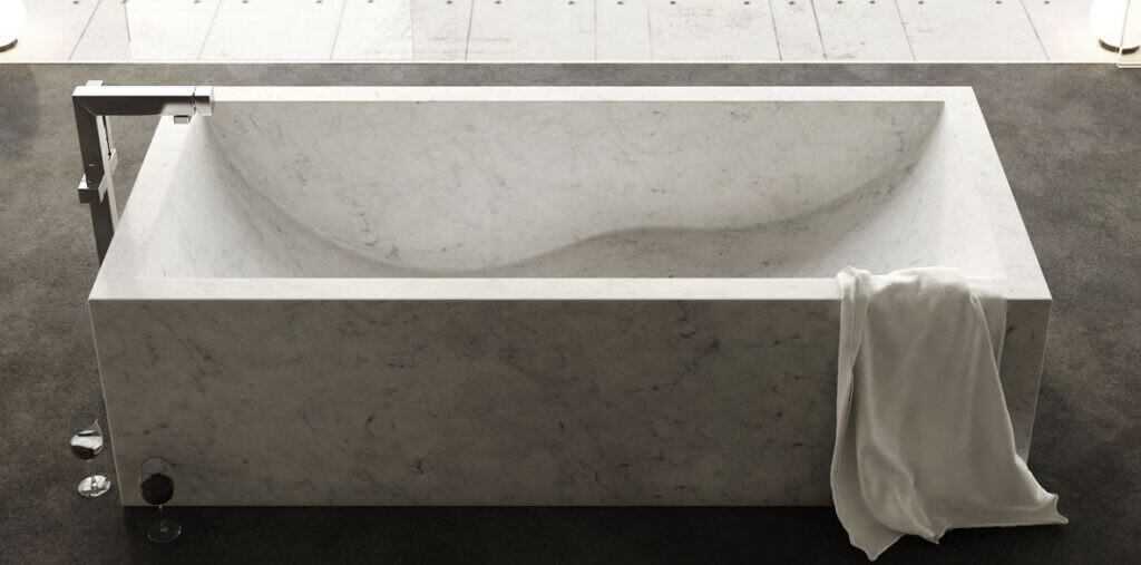 Дизайнерские ванны из цельного куска мрамора или травертина не только впечатляют роскошью, но и комфортны в использовании. Дизайнер Dedalo Stone