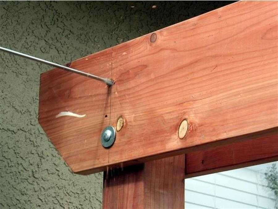 - Для соединений шип-паз используем эпоксидный клей, промазываем замки и зажимаем их до полного высыхания. Там, где крепления на дюбелях, применяется полиуретановый клей.