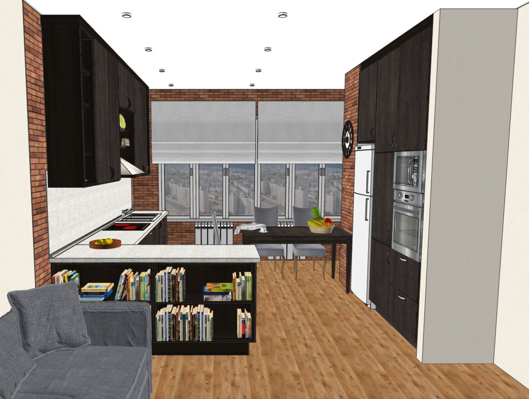 В итоге кухня получилась функциональная, массивная и с технологичной начинкой. Учтены все пожелания хозяев, они остались довольны.