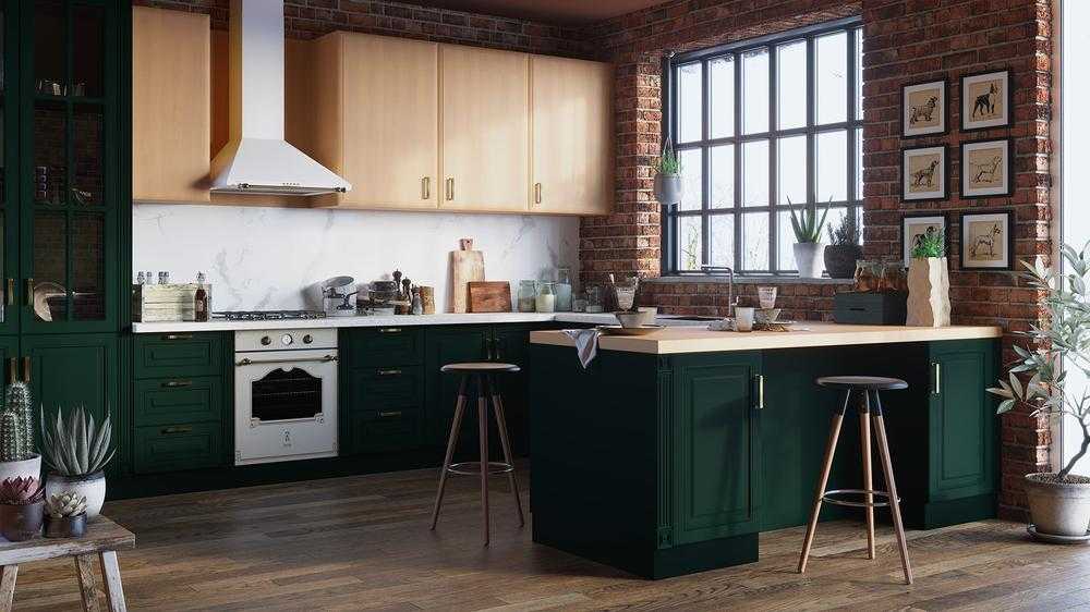 К примеру, при задаче создать в большой кухне брутальный интерьер в стиле лофт, светлые цвета вводятся в небольшом количестве в роли акцентов.