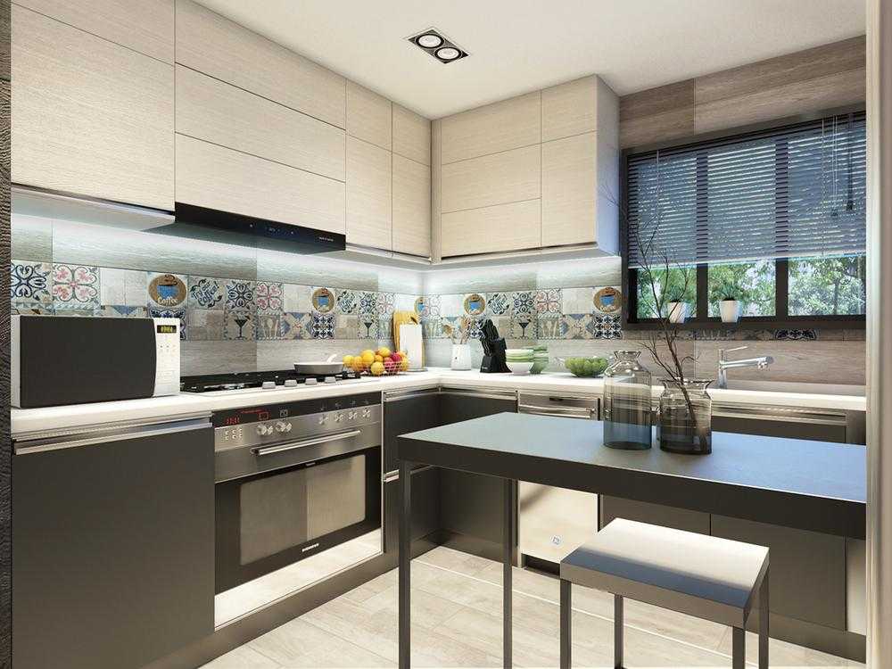 Столешница может быть оформлена в тон фасадам, светлой или яркой. Если кухня малогабаритная, лучше не делать столешницу тёмной — большее число светлых поверхностей поможет нивелировать эффект уменьшения пространства.