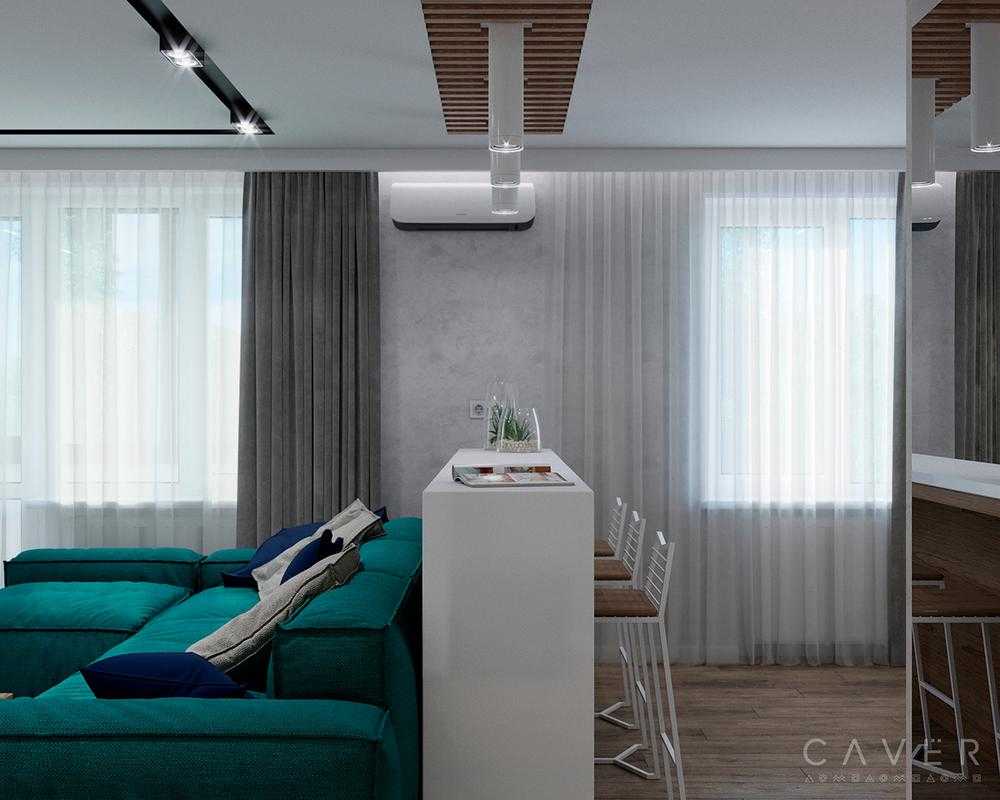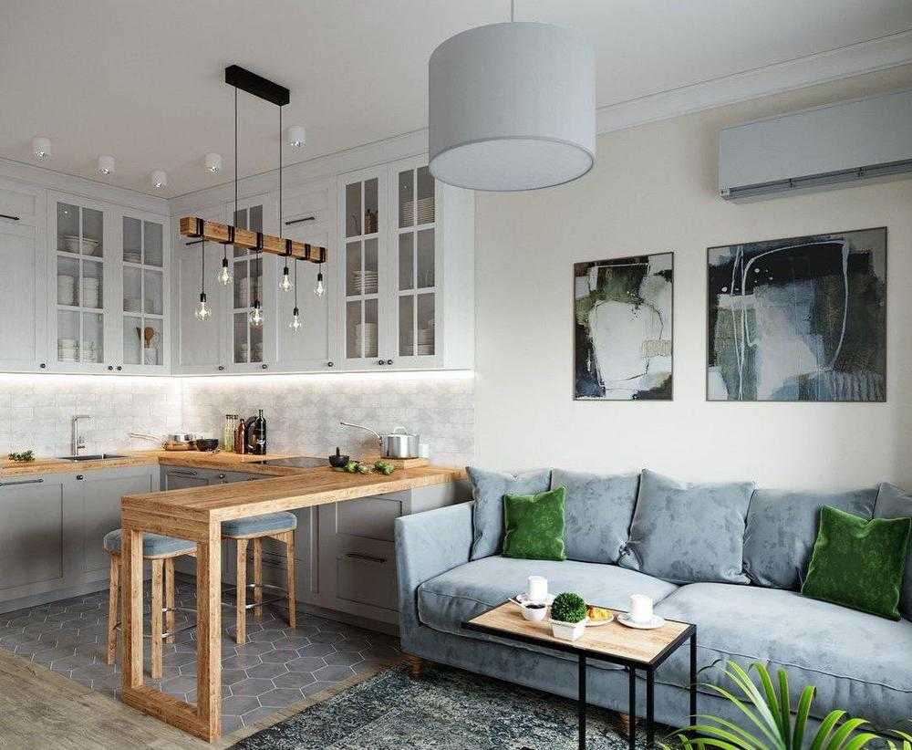 Элегантный бар визуально отделит кухню от комнаты. Такое зонирование будет выглядеть стильно и ненавязчиво, при этом весьма четко разграничивая две зоны.