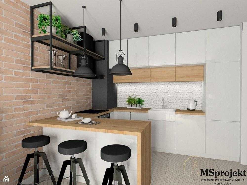 Маленькая кухня с барной стойкой простой конструкции, то есть та, которая не трансформируется, не проиграет в экономии пространства хотя бы потому, что позволит задействовать пространство под ней, например, для хранения стульев. Расположенная возле стены конструкция позволит хранить под ней и другие габаритные вещи.