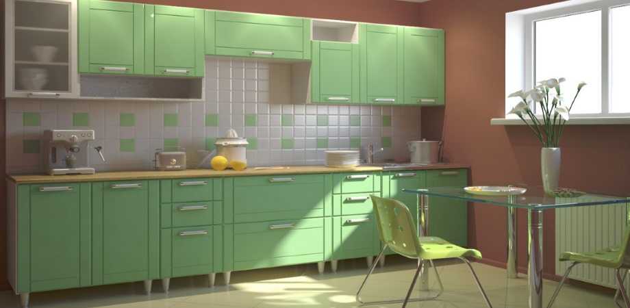 Оформление интерьера с кухонным гарнитуром мятного цвета