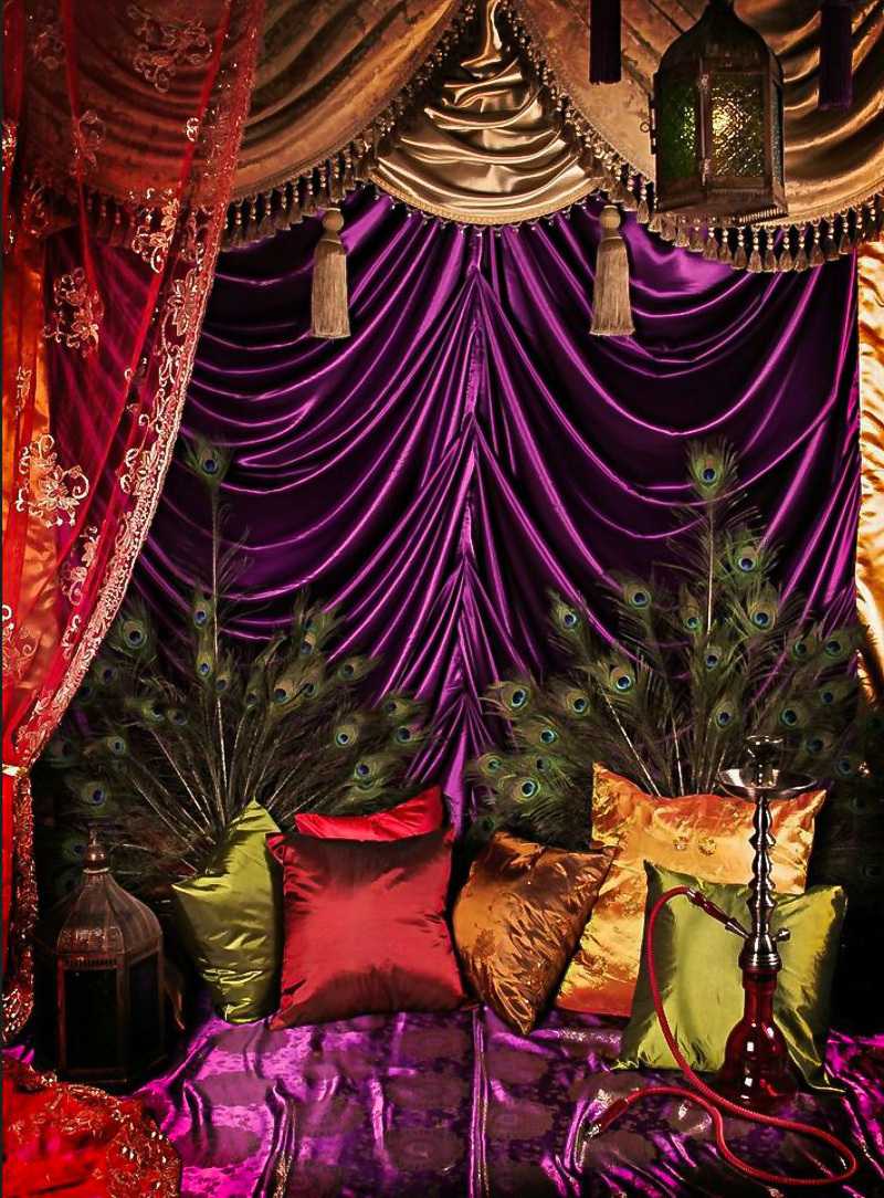 А также в шторах и занавесках. Причем, «цыганские» занавески и шторы должны, во-первых, быть многослойными, а во-вторых, каждый слой должен отличаться по цвету.