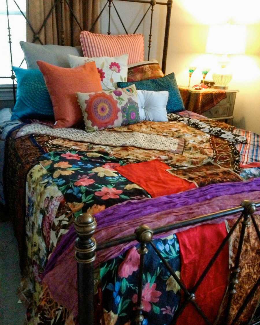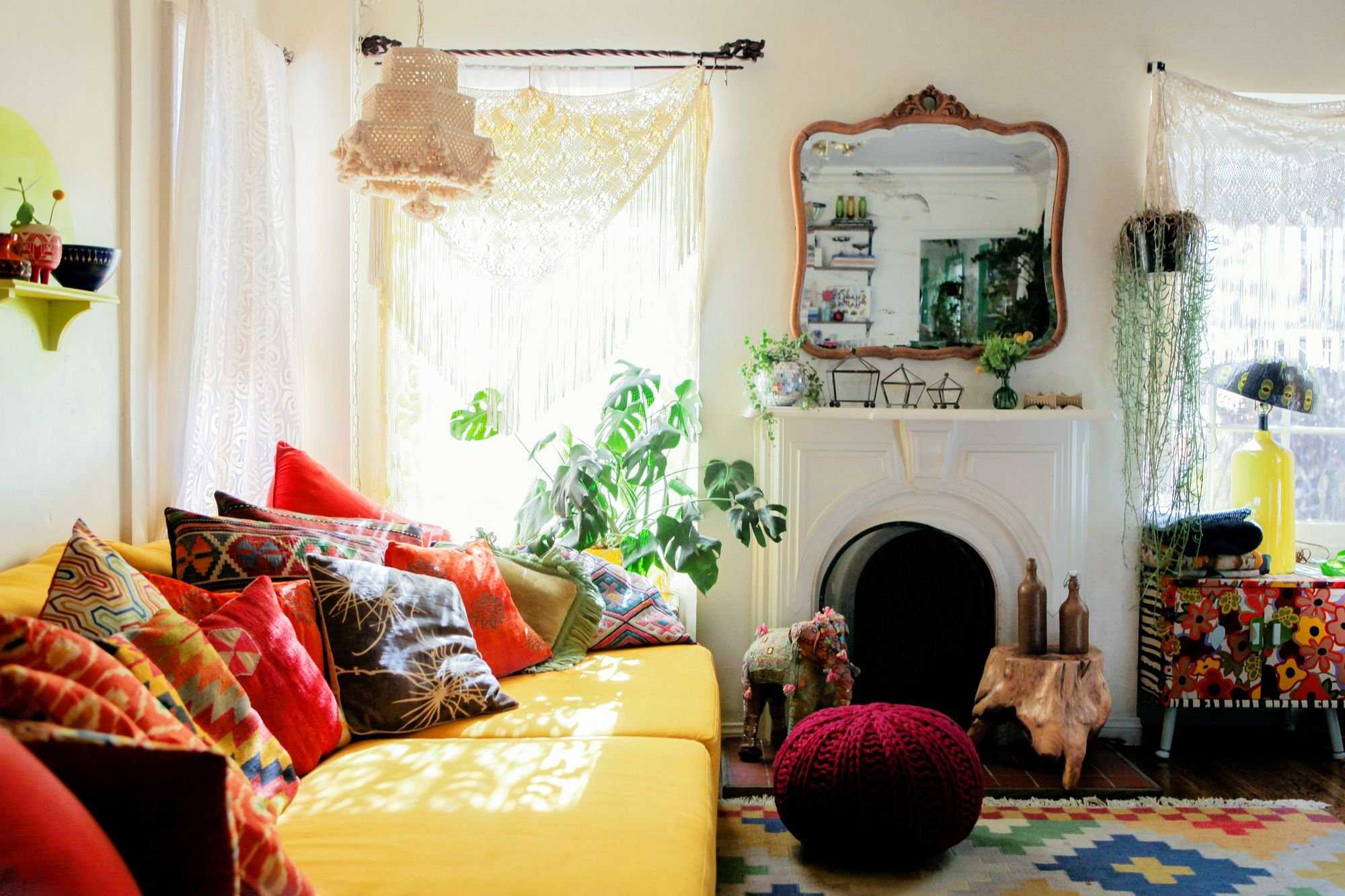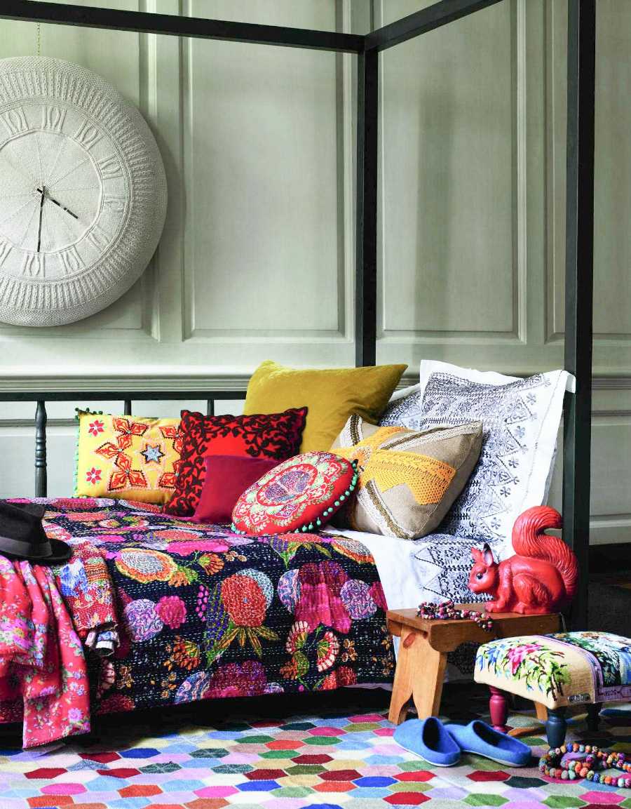 Диван, кровать, тахта, канапе и другие места для сидения и лежания должны быть застелены яркими покрывалами. На подушках должны быть яркие многоцветные наволочки.