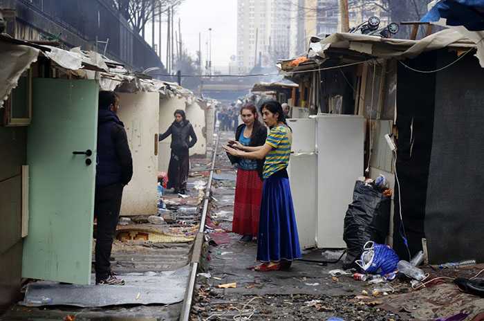 Цыганский лагерь вдоль заброшенной ж/д колеи в Париже.