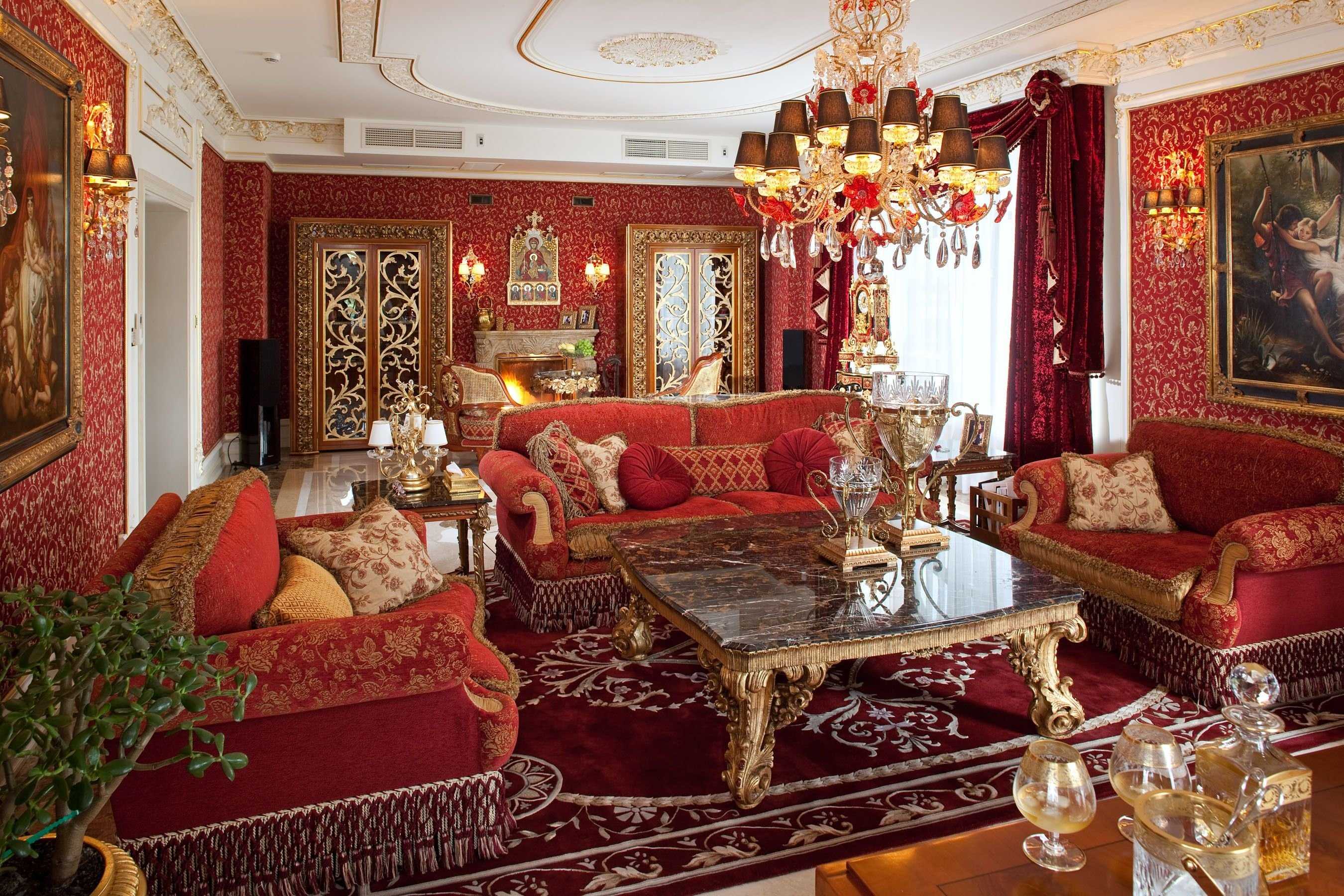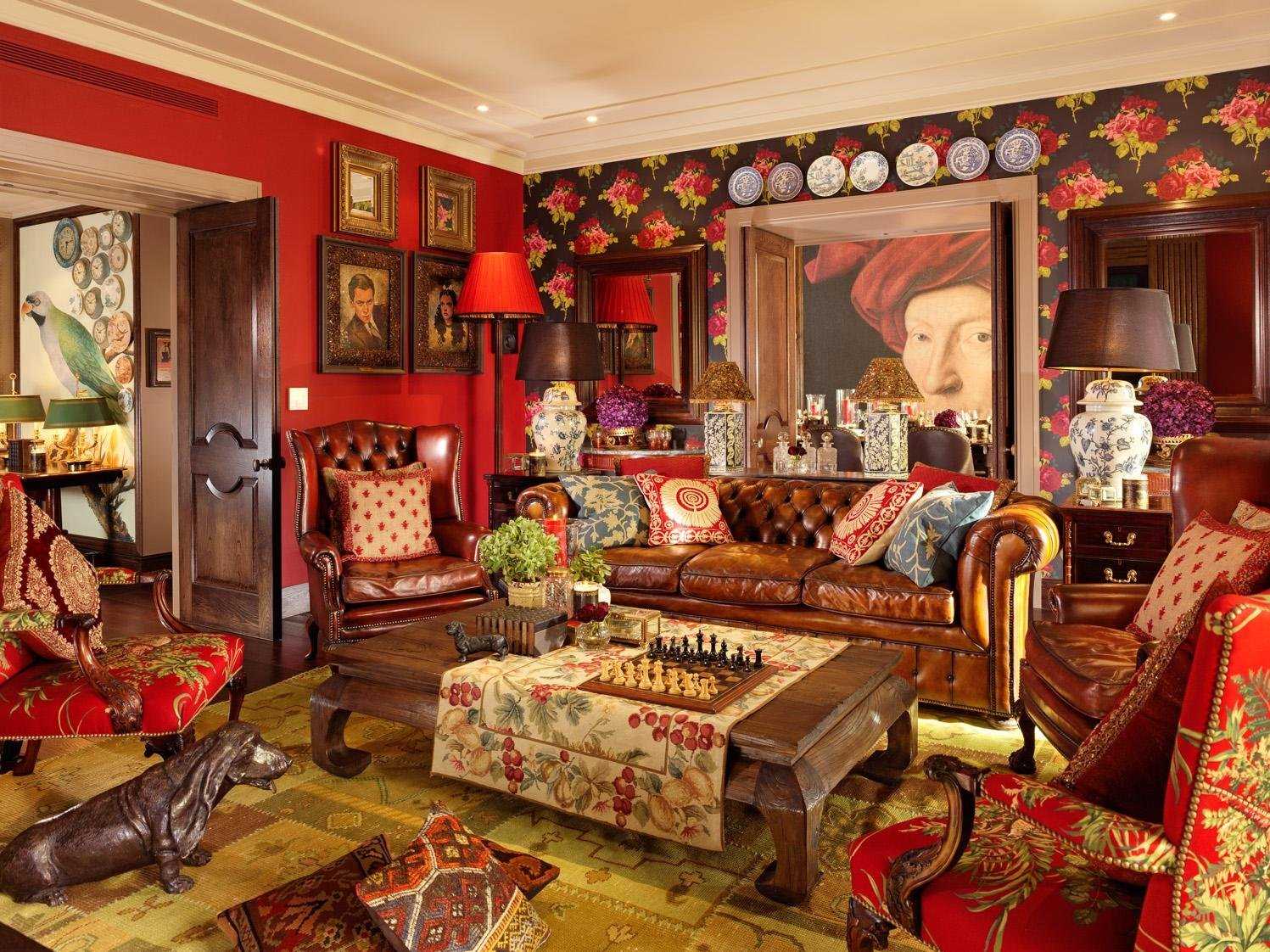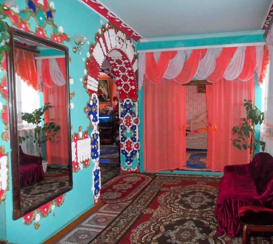 Обязательное условие: на стене (желательно, в самой большой комнате) должен висеть яркий ковер, либо — яркие обои с тиснеными золочеными узорами.