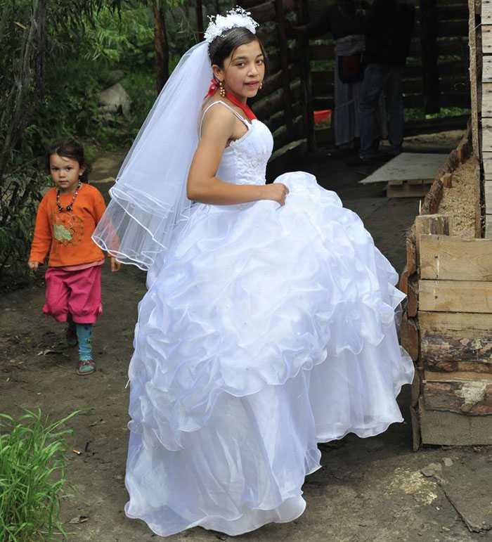 Пожалуй, ни у кого не распространены такие ранние браки, как у цыган. В некоторых этнических группах невесту спешат сосватать ещё в раннем детстве, чтобы выдать замуж уже в 11-12 лет. Жених может быть даже младше. Как поясняют исследователи, цыгане повёрнуты на целомудрии, а «детский брак» – гарантия того, что невеста не опорочила себя до свадьбы. Неудивительно, что именно цыганка стала самой молодой в мире бабушкой – она обзавелась внуком в 23 года.
