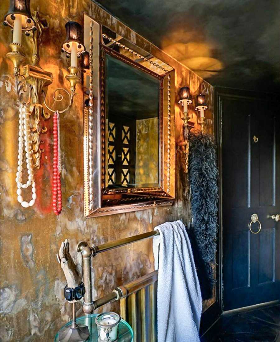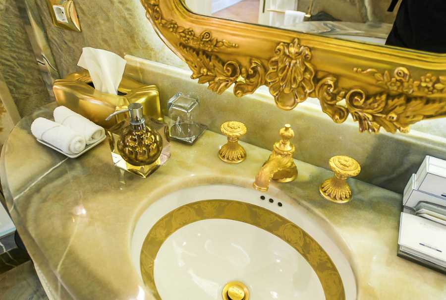 Кстати, о золоте. Золото (позолота) в цыганском интерьере играет особую роль. Чем больше золота (позолоты), тем считается красивее. При этом, золотой оттенок могут иметь любые предметы: посуда, мебель, люстры, иногда — даже батареи отопления и розетки с выключателями.