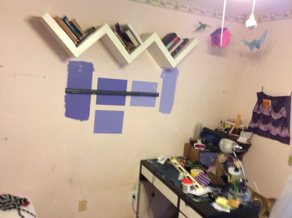 Но если вы, как и я, рисовали многоугольники таким образом, чтобы они были наклонены по отношению к горизонтали, при навешивании полок и предметов мебели следует воспользоваться карандашом и уровнем, чтобы ровно все укрепить.