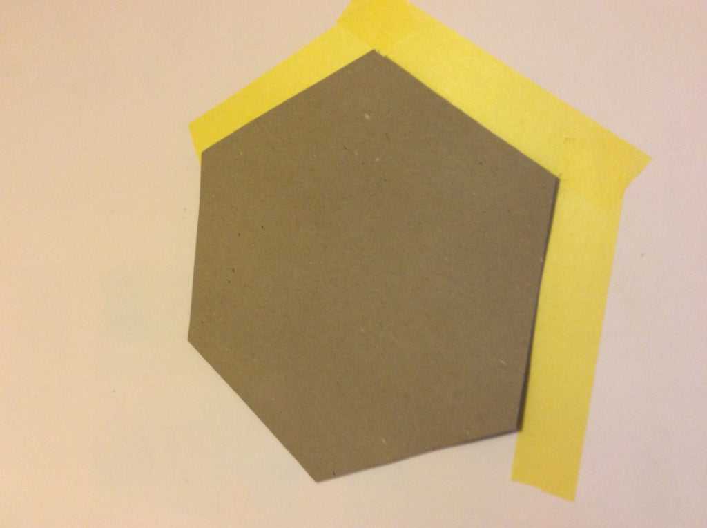 Вырежьте из картона заготовку — шестигранник, перенесите его на обои и вырежьте. Конечно, заранее рассчитайте, сколько шестигранников из обоев вам понадобится на одну стену.