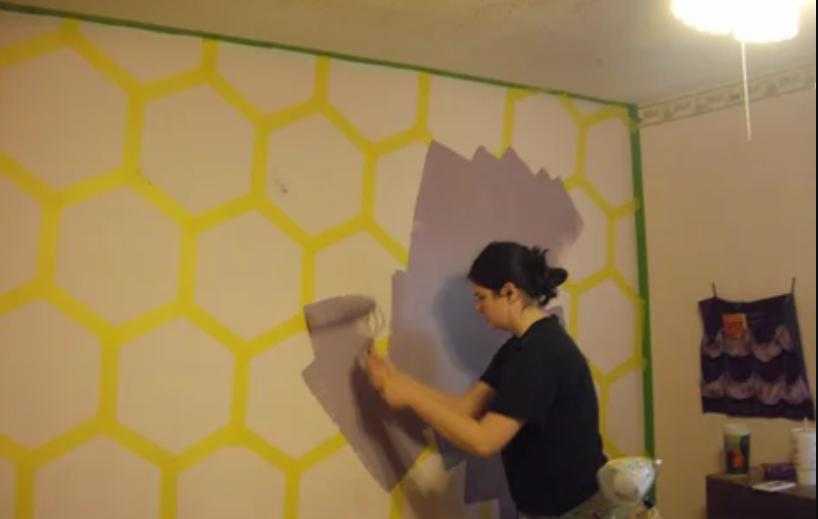 Фиолетовые соты, или Забавный орнамент для украшения комнаты: мастер-класс по необычной покраске стен
