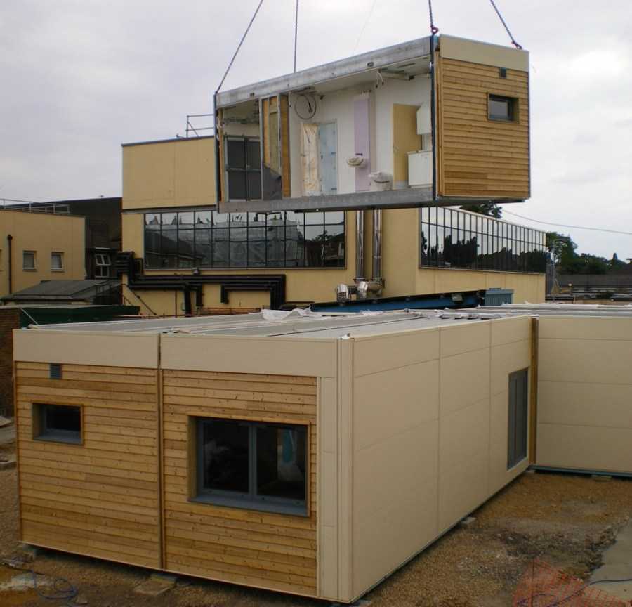 При необходимости проведение отделочных работ (как внутри, так и в середине модульного блока здания). Для отделочных работ (внешних) чаще всего используют элементы панелей, имеющие стандартные размеры. Это позволяет значительно снизить денежные затраты на весь процесс строительства.