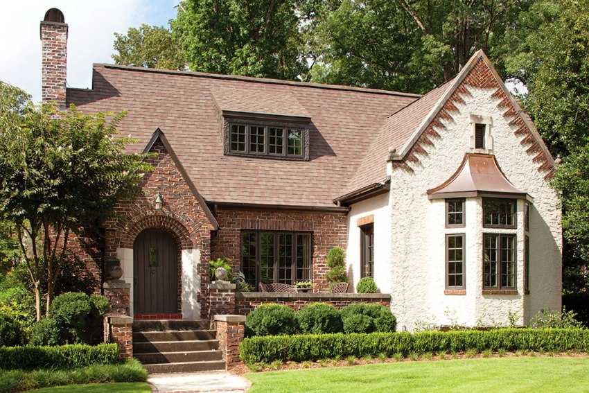 Основными материалами, используемыми для отделки домов в английском стиле являются: природный камень, кирпич, штукатурка, дерево