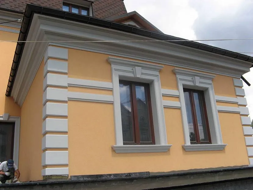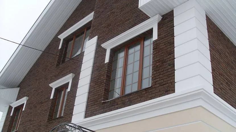 - Оконные элементы (обналичка, профили, устанавливающиеся в основании проёмов, верхние арки).