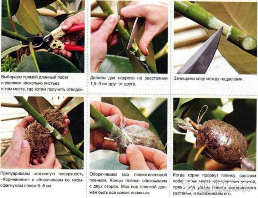 Фикус размножать можно следующими способами: черенками, воздушными отводками, листом