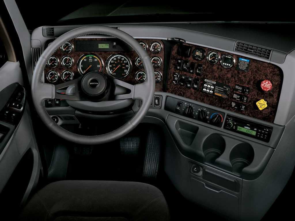Кабина американского тягача Freightliner Classic или Classic XL столь же удобна, как и функциональна. Эргономичная передняя панель имеет изгиб справа, преимущество такого решения в том что все органы управления и приборы находятся в пределах досягаемости водителя. Индикаторы на приборной панели легко читаемы, а все выключатели просто идентифицировать. Передняя панель в стандартной комплектации имеет вставки с замысловатым рисунком древесной структуры. Также вы можете выбрать вариант из благородной древесины красных тропических пород.