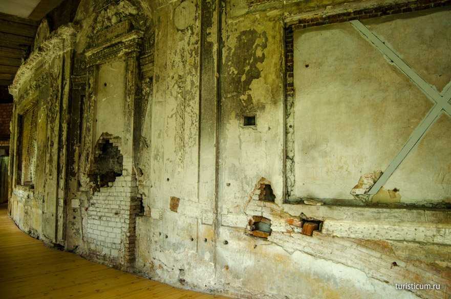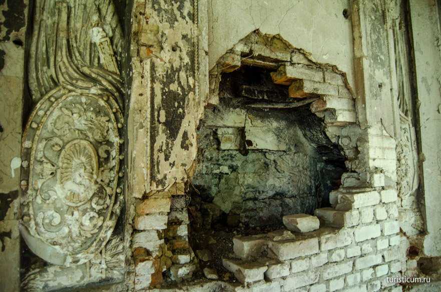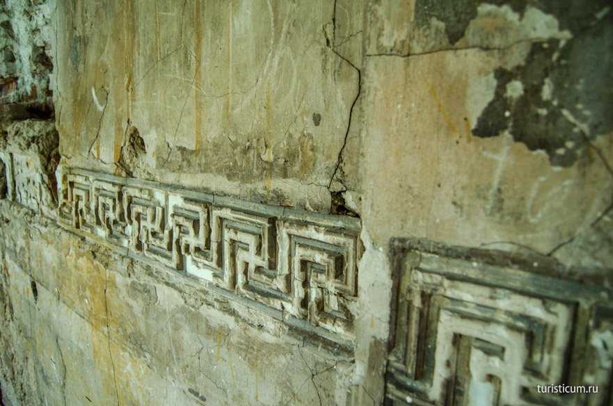 О былой роскоши Чесменской галереи сейчас можно судить только по остаткам лепнины на стенах.