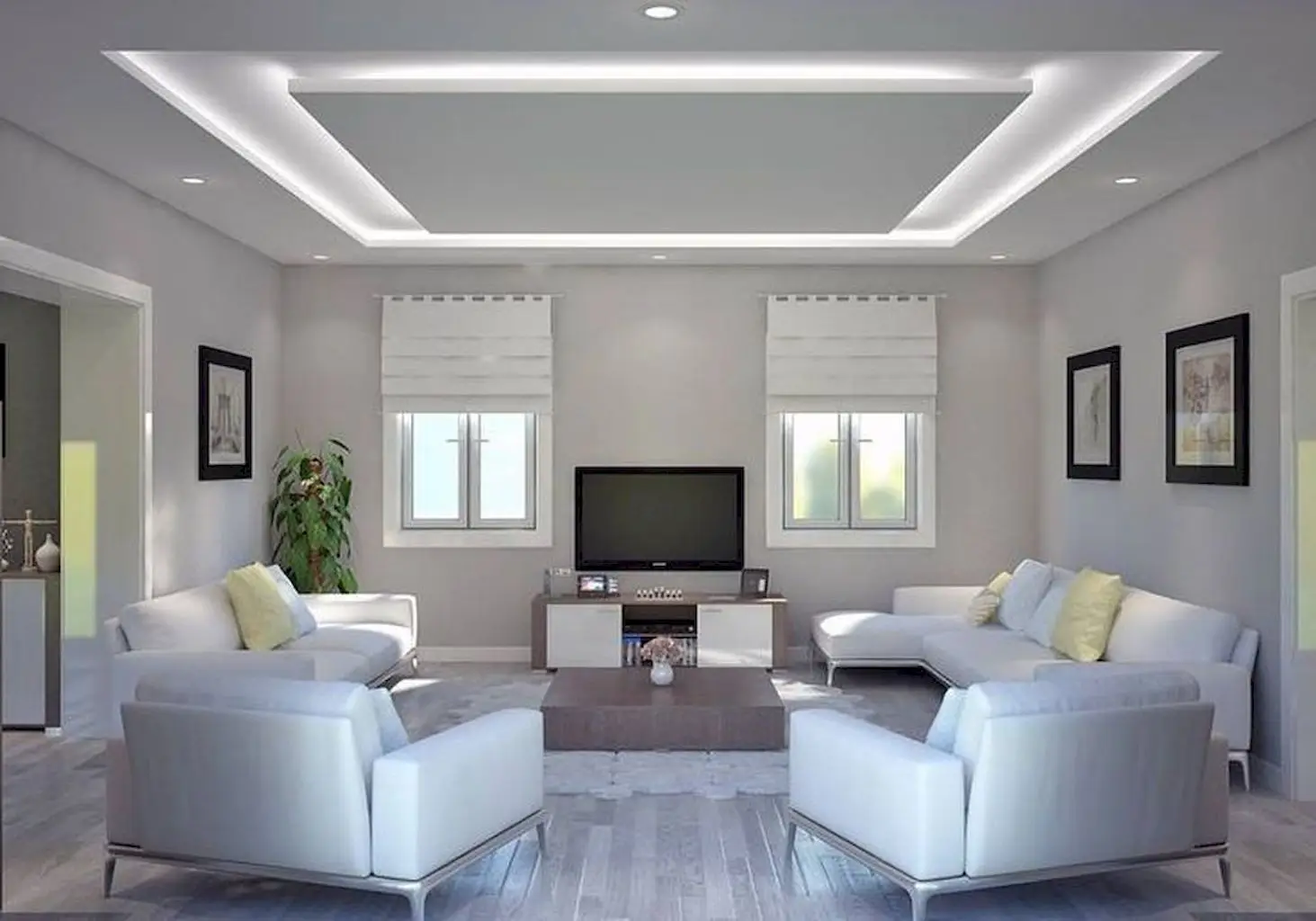 Посмотрев фото дизайна потолков из гипсокартона для гостиной становится ясно, что большой популярностью пользуется подсветка в качестве основного освещения.