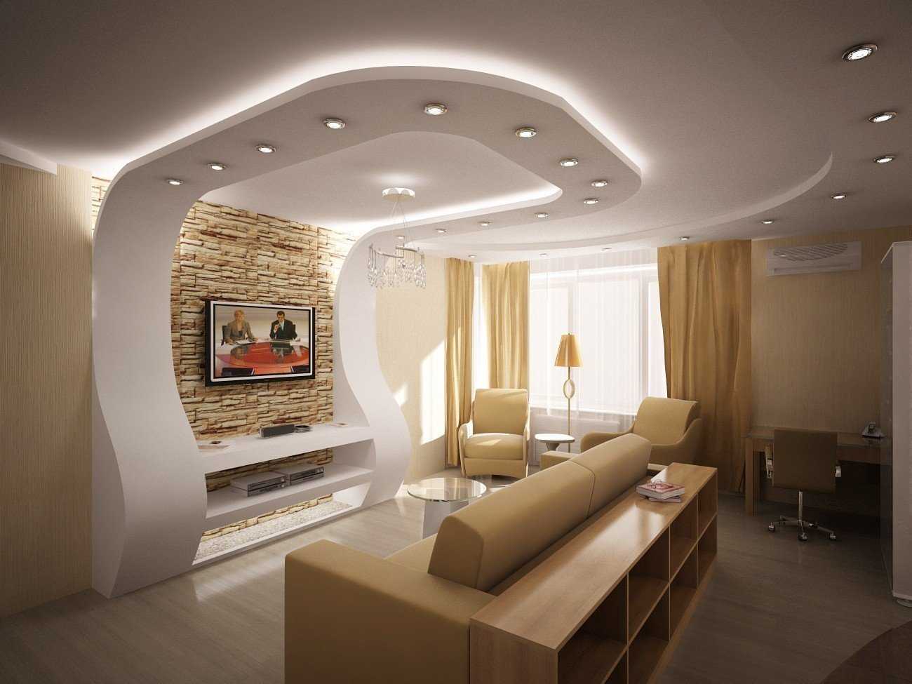 Подсветка может быть светодиодная, которая пользуется повышенным спросом. Гипсокартон считается недорогим потолочным материалом. В любой зоне его легко монтировать. Нередко в домах можно увидеть потолки из гипсокартона фото для гостиной, которые с каждым годом становятся все популярнее.