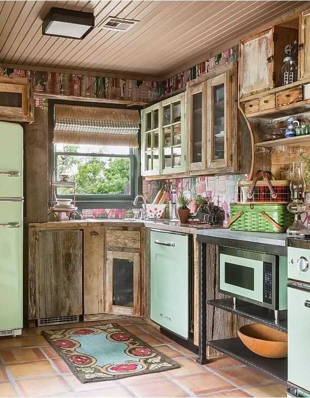 - Для деревенского дизайна предпочтительны расцветки под дерево и колоритные народные узоры (к примеру, хохлома или пейсли). Если техника представлена в монохромной палитре, подойдут слегка приглушенные тона: оливковый, терракотовый, лавандовый, бежевый. Стальному блеску и хромированным деталям здесь явно будет не место.