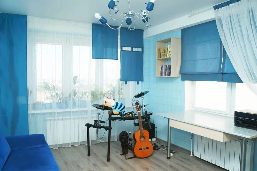Синие шторы не советуют использовать в помещениях, выходящих на северную сторону: комната, в которую и так поступает мало солнечного света, будет казаться ещё холоднее. Но в этом случае можно использовать светлые тона или нюансы с вкраплением зелёного, например, бирюзовый, циан или цвет сосны.