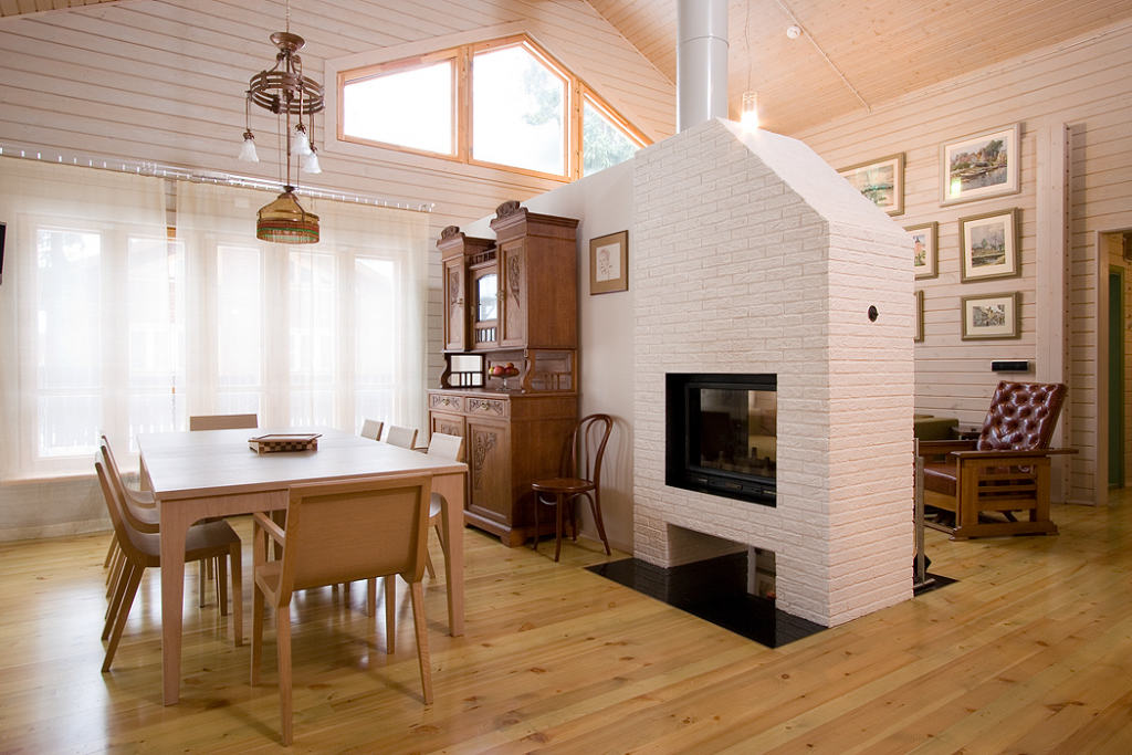 В загородном доме не обойтись без камина, особенно, если планируется эксплуатировать дом круглый год. Камин может быть как дровяной, так и электрический, в любом случае он будет выполнять сразу две функции – отопление дома и украшение интерьера.