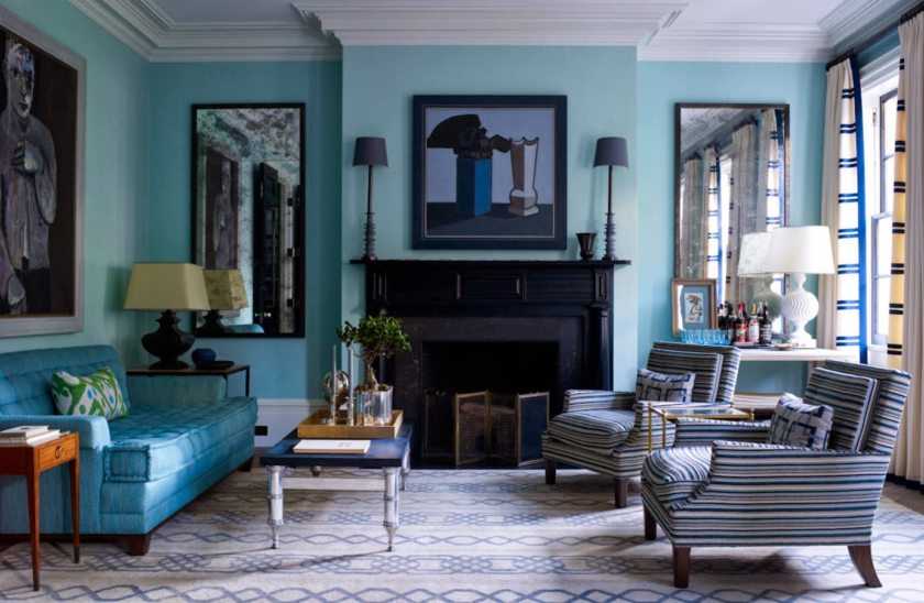 Бирюзовый цвет в гостиной
