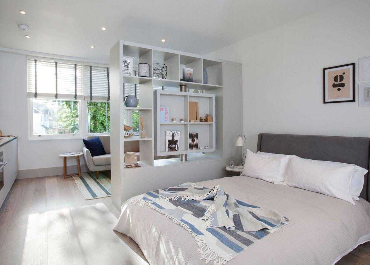 Это может быть и шторка, которую можно при желании собрать, и стеллаж с книгами, цветами, светильниками, личными вещами.