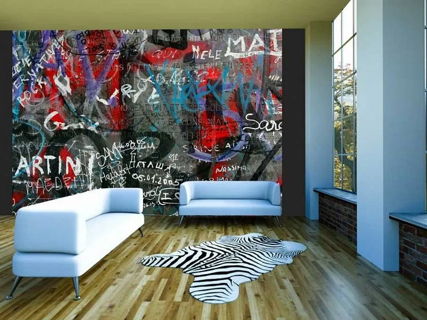 Граффити на стене в гостинойИсточник remont-samomy.ru