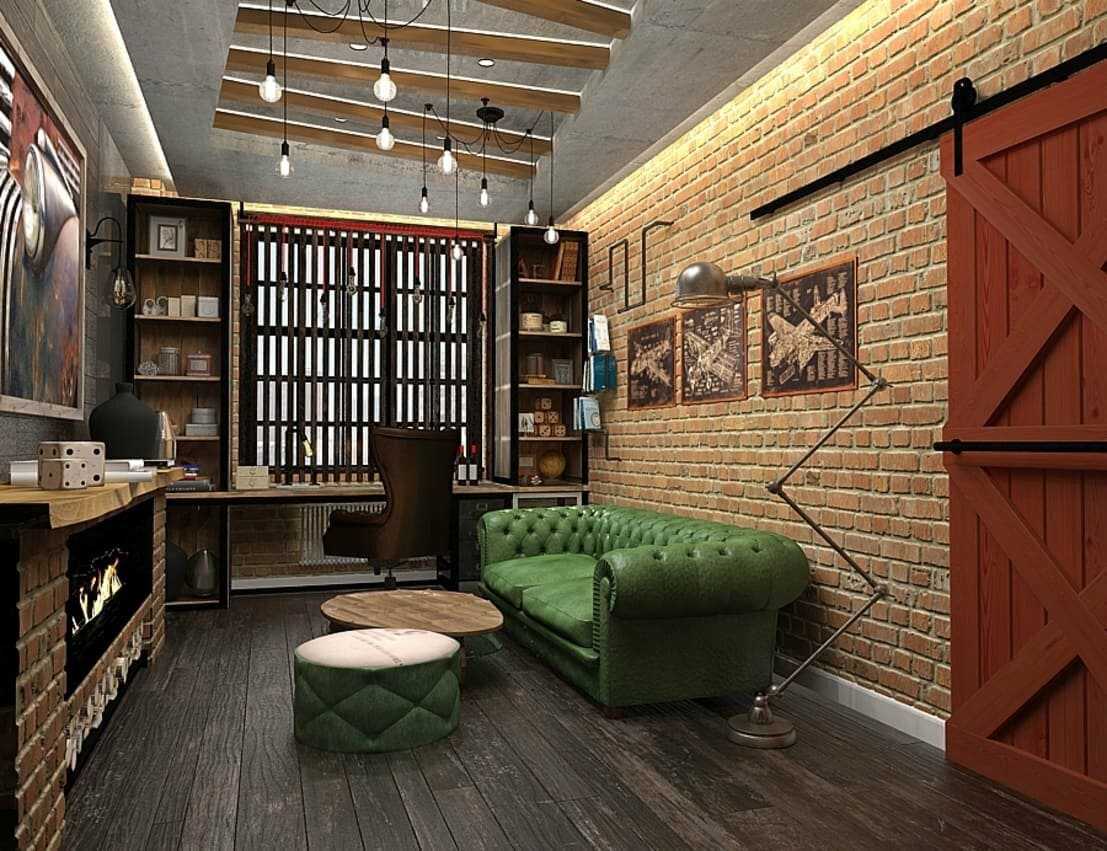 Офис — это рабочая комната. Его не нужно чрезмерно декорировать. Все, что потребуется в офисе, — это стол, стул и полки для книг и других необходимых вещей. Ну и хорошо, яркое освещение в стиле холла. Шкаф-купе в стиле лифта — это рабочий стол, стеллаж и полки на фоне кирпича и дерева.